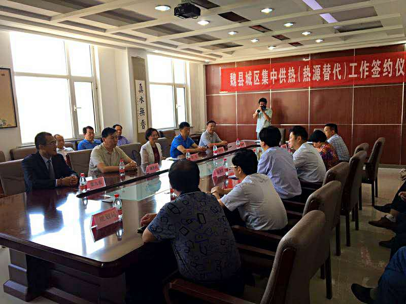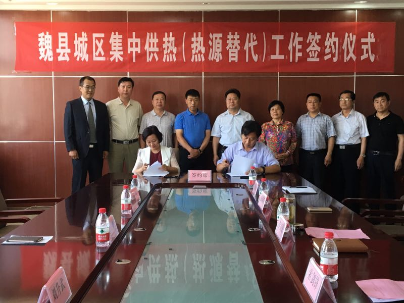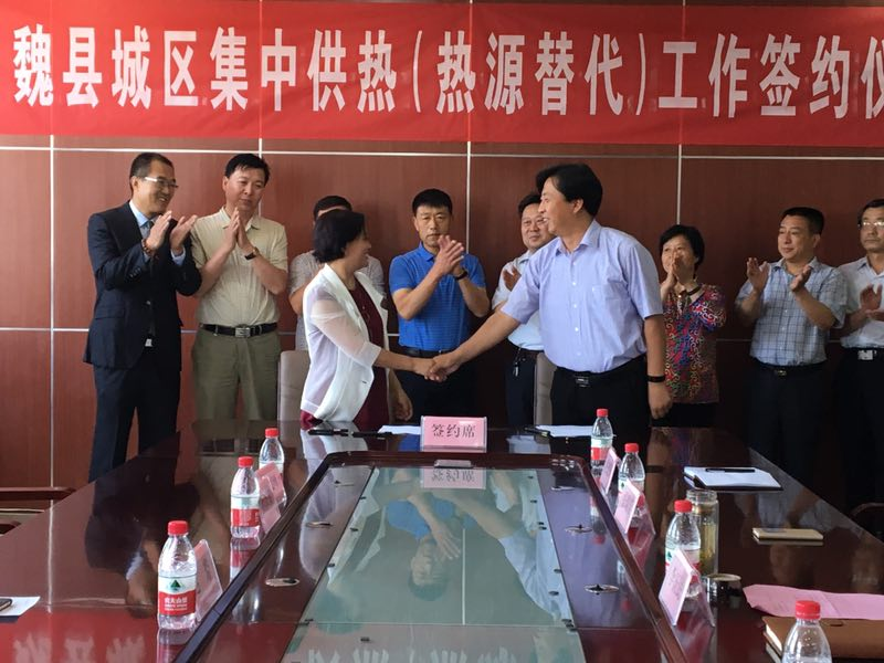 為盡早解決魏縣城區(qū)居民集中供熱(熱源替代)問題,5月24日上午,魏縣舉行城區(qū)集中供熱(熱源替代)工作簽約儀式。縣人大常委會(huì)副主任李慶民主持儀式,政府副縣長(zhǎng)索劍峰、縣政協(xié)副主席張瑞榮,青島科創(chuàng)藍(lán)新能源股份有限公司董事長(zhǎng)遲芳、威海遠(yuǎn)深新能源科技有限公司董事長(zhǎng)梁澤東、威海遠(yuǎn)深新能源科技有限公司董事劉升武、百卅藍(lán)(北京)新能源科技有限公司董事長(zhǎng)宛海鳴、百卅藍(lán)(北京)新能源科技有限公司總經(jīng)理徐九東及縣有關(guān)單位和鄉(xiāng)鎮(zhèn)參加簽約儀式。