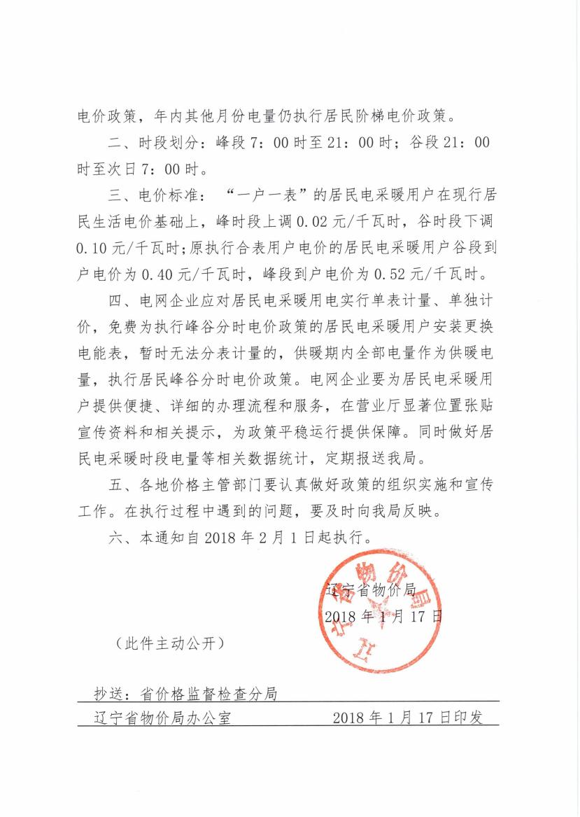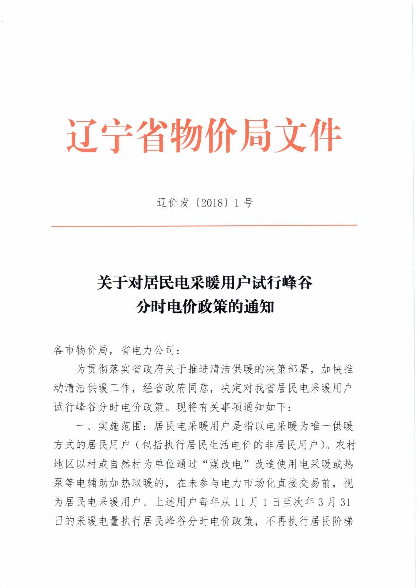 政策 | 遼寧省物價(jià)局關(guān)于電采暖峰谷分時(shí)電價(jià)政策的通知