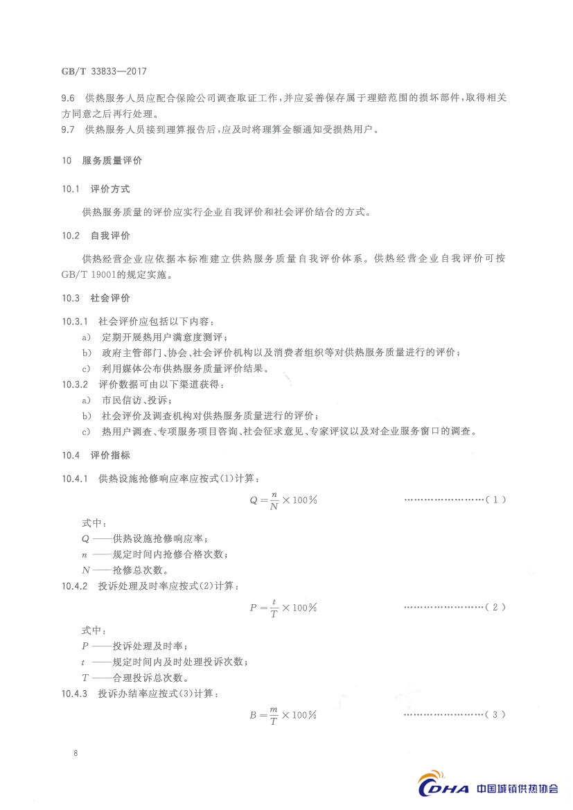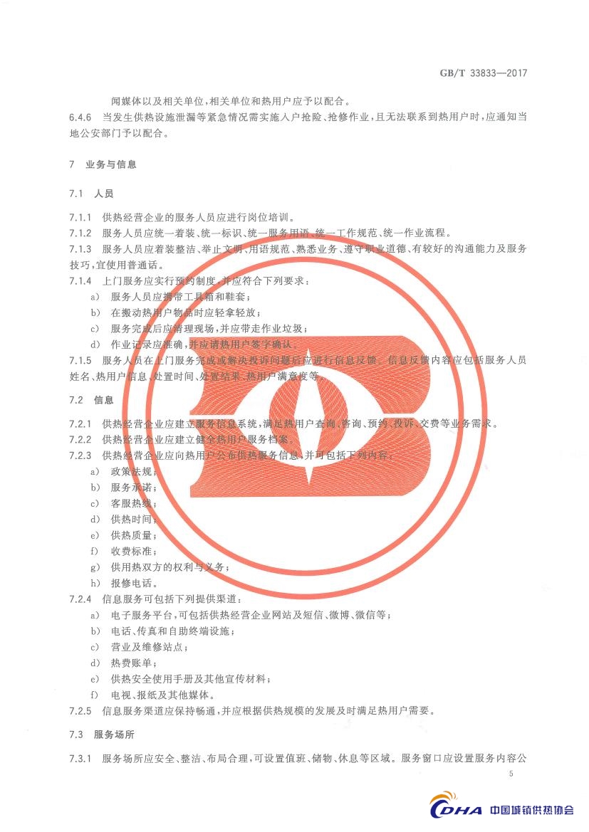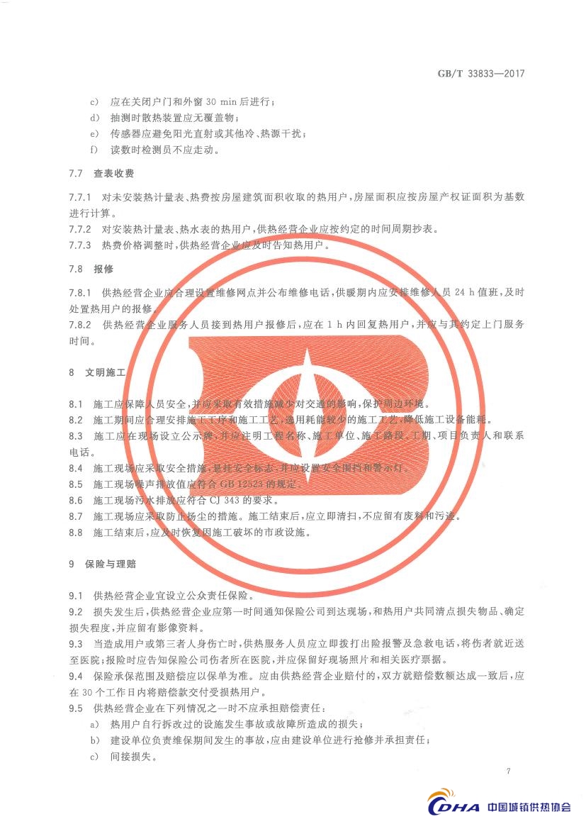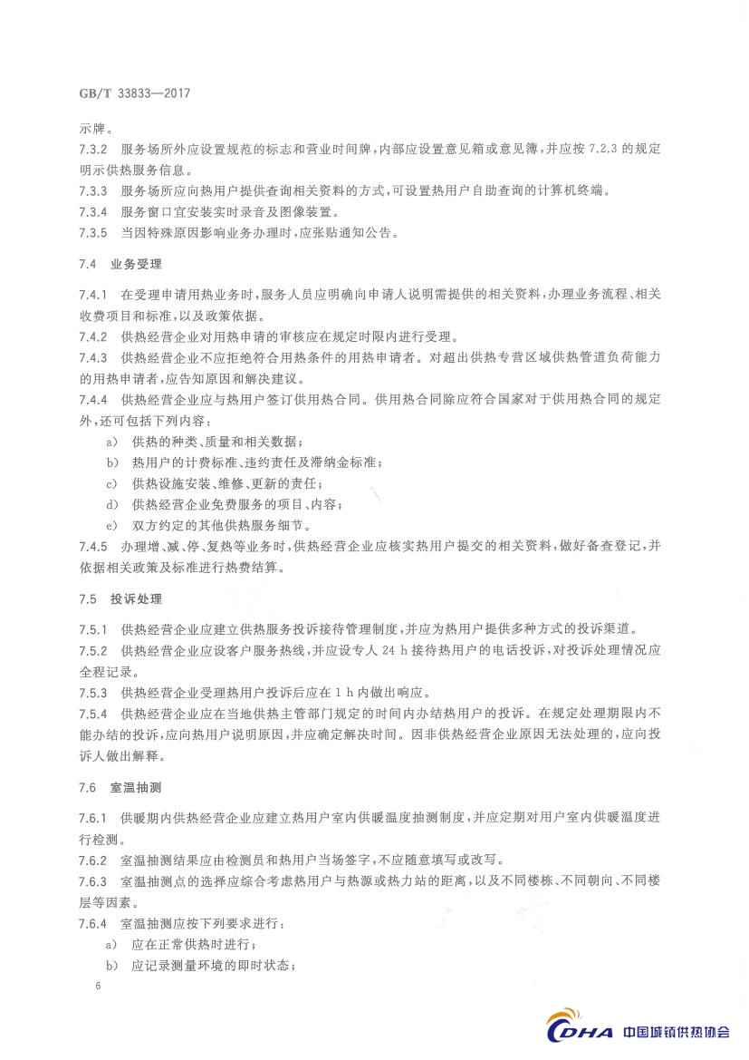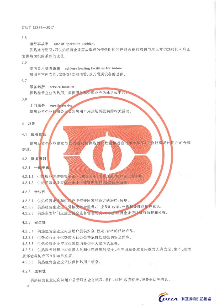 由中國(guó)城市建設(shè)研究院有限公司、中國(guó)城鎮(zhèn)供熱協(xié)會(huì)、北京市熱力集團(tuán)有限責(zé)任公司為主要起草單位編寫(xiě)的《GB/T 33833-2017 城鎮(zhèn)供熱服務(wù)》國(guó)家標(biāo)準(zhǔn)于2017年5月31日由中華人民共和國(guó)國(guó)家質(zhì)量監(jiān)督檢驗(yàn)檢疫總局和中國(guó)國(guó)家標(biāo)準(zhǔn)化管理委員會(huì)聯(lián)合發(fā)布發(fā)布,于2018年4月1日起實(shí)施。